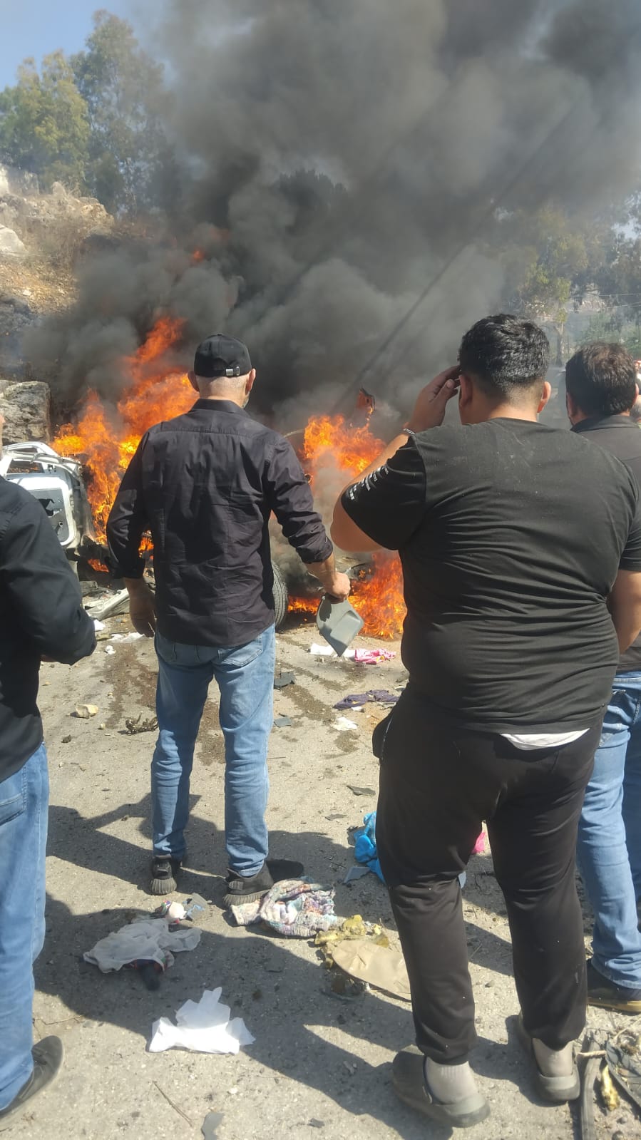 كما أدت الغارة إلى احتراق السيارة بالكامل، وعملت فرق الدفاع المدني وكشافة الرسالة الإسلامية والهيئة الصحية الإسلامية على اخماد النيران المشتعلة.